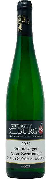 Die Brauneberger Juffer Sonnenuhr bildet den besonders steilen und sonnenverwöhnten Kern der Juffer-Lage. Mit Neigungen von über 80 Prozent zählt sie zu den spektakulärsten Steillagen der Mosel. Der reine Devonschieferboden speichert tagsüber Wärme und gibt sie nachts wieder ab, wodurch eine gleichmäßige Reife und eine charakteristische Mineralität entstehen. Die Weine zeigen sich besonders feinfruchtig, präzise und elegant.