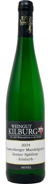 Der Name „Mandelgraben“ lässt sich auf die wärmespeichernden Eigenschaften des Tals zurückführen – in dieser Senke reifen nicht nur Weintrauben besonders gut, sondern früher auch Mandeln, was auf das milde Klima hinweist. Heute bietet dieser geschützte Bereich mit seiner günstigen Ausrichtung und Bodenbeschaffenheit ideale Bedingungen für den Anbau von Riesling oder auch unseren Kerner, der hier besonders fruchtbetont und harmonisch gedeiht.